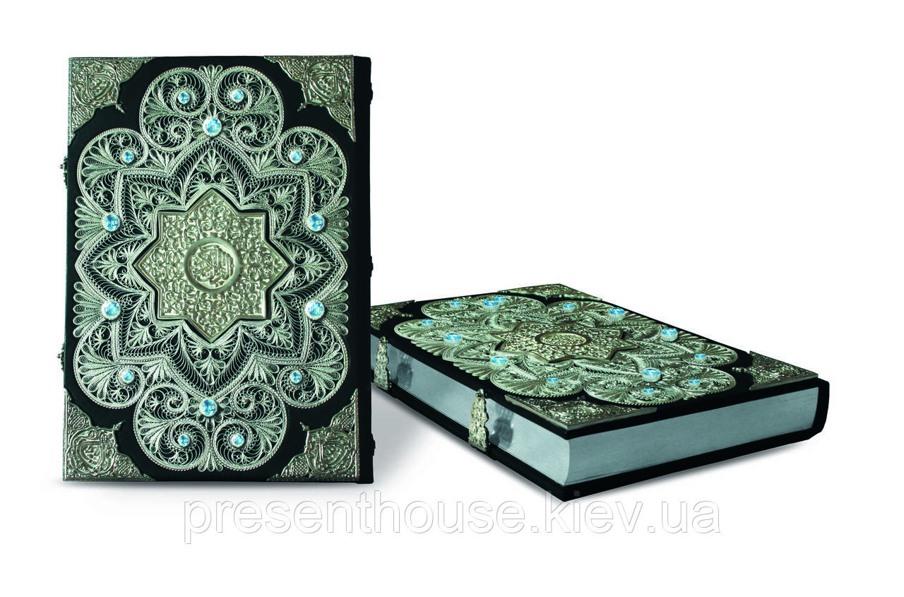 Книга шкіряна Коран з філігранню і малахітом і литтям